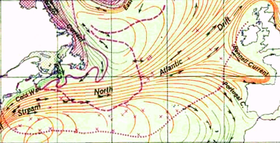 The flower symbology on the page is a thistle – telling the reader to make Scotland the heading. The stems are the merger between Gulf Stream Current and the North Atlantic Drift 52° 42′ N / 34° 52′ W. The most important symbol in MS 408 is the root system of 2r – The Oak Island “Eye of the Swamp.” A surveyors point manufactured by the Knights Templar possibly in the 12-13th century. This point sets up all other points, without it, any other point in MS 408 would’ve been impossible.