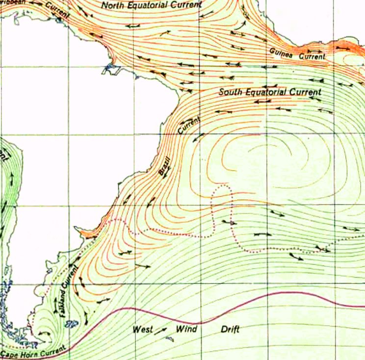 Ocean Currents/Gyre: Westerlies and Brazil Current