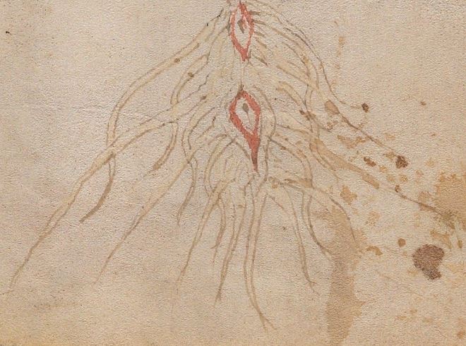 Observation! In surveying Observations are used to measure locations on the Earth’s surface that have been determined by surveying geometric methods. The Observations within the text itself will give specific instruction on how to manage these areas, how to calculate time, and what extreme weather anomalies you might face. When observing folio 17r the root system is a depiction of Porcus Marinus. The great and magnificent mythological creature known to Ancient Greeks as the “Sea Swine” that distorts the truth. What truth is distorted?