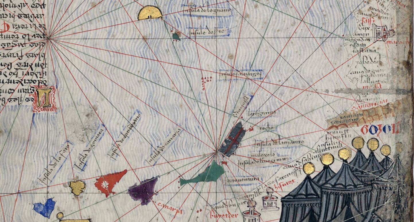 Catalan Atlas: Loci Points and secant arc from Canary Island “Teroerife”