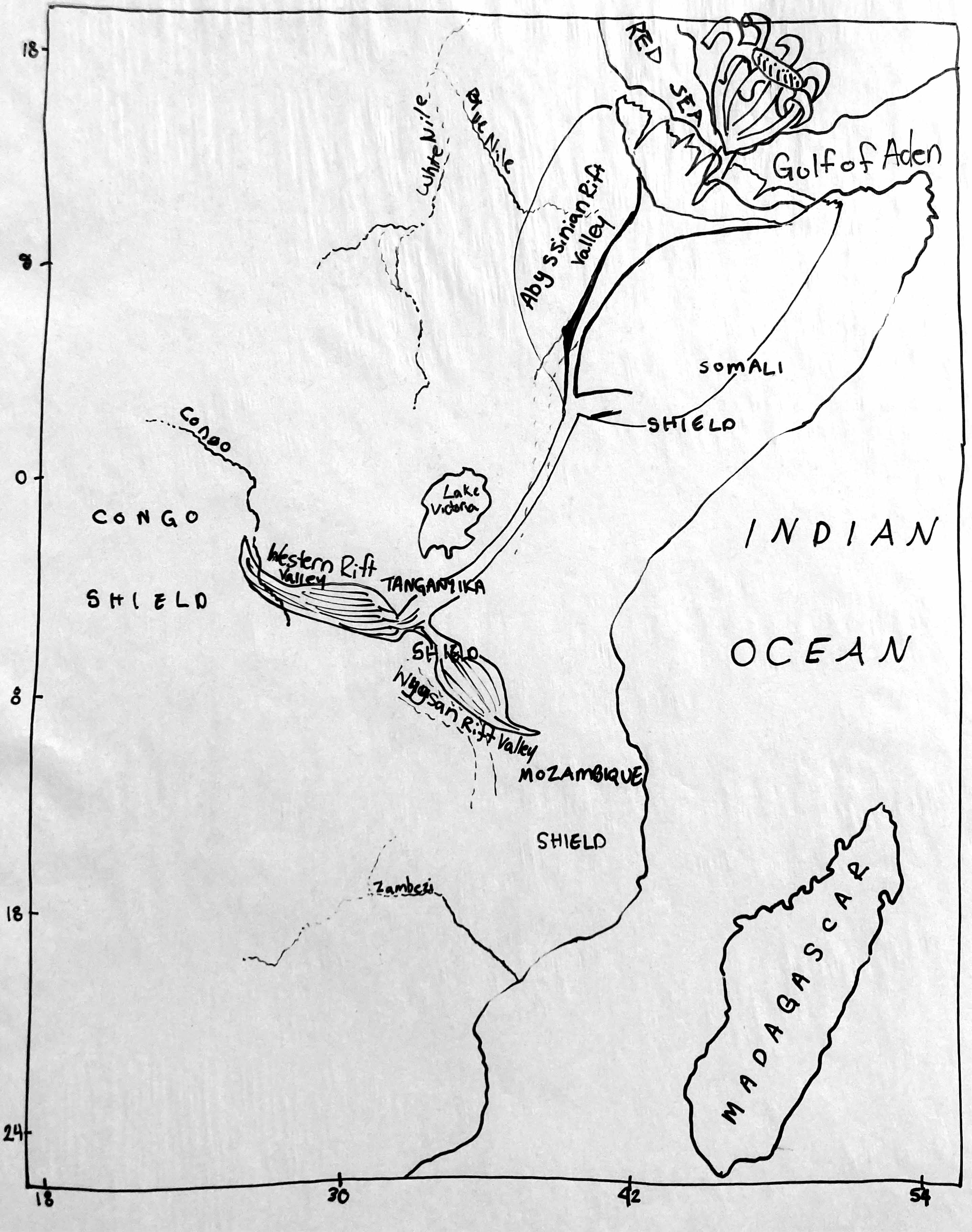 Rivers/Lakes: Lake Tanganyika, Lake Malawi, Ethiopia Highlands into Gulf of Tadjoura