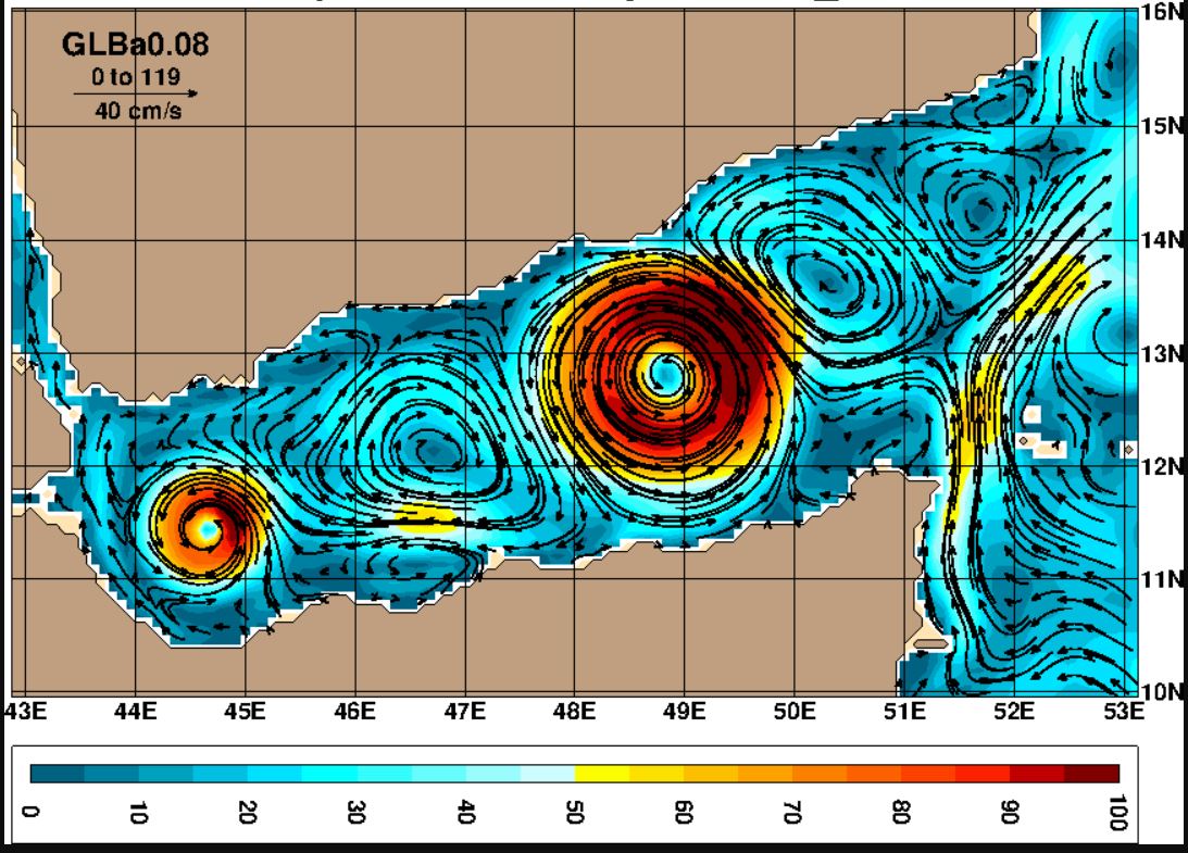 Ocean Currents/Gyre: Gulf of Tadjoura, Red Sea, Gulf of Aden Currents, entering Arabian Sea