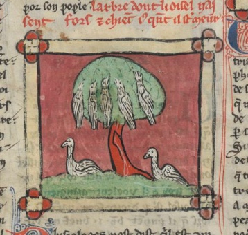 ” …I / We… heard that in Scotland there was once a tree growing on the bank of a river which produced fruits shaped like ducks. “When these were nearly ripe, they dropped down of their own accord, some onto the earth, and some into the water. Those that landed on the earth rotted away, but those that sank into the water instantly came to life, swam out from below the water, and immediately flew into the air, equipped with feathers and wings. When I eagerly investigated this matter, I learned that miracles always recede further into the distance and that the famous tree was to be found not in Scotland but in the Orkney islands…”