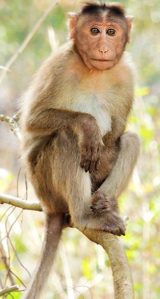 The Bonnet Monkey is also the type of monkey that closely resembles Hanuman the Monkey God. Hanuman in some legends is called the son of the deity Vayu (Wind god). In a Hindu version of his childhood legend, which is found in Jain texts such as the 8th-century Dhurtakhyana, Hanuman’s Icarus-like leap for the sun proves to be fatal and he is burnt to ashes from the sun’s heat. His ashes fall onto the earth and oceans. Gods then gather the ashes and his bones from land and, with the help of fishes, re-assemble him. They find everything except one fragment of his jawbone. His great-grandfather on his mother’s side then asks Surya to restore the child to life. Surya returns him to life, but Hanuman is left with a disfigured jaw. Hanuman is said to have spent his childhood in Kishkindha.