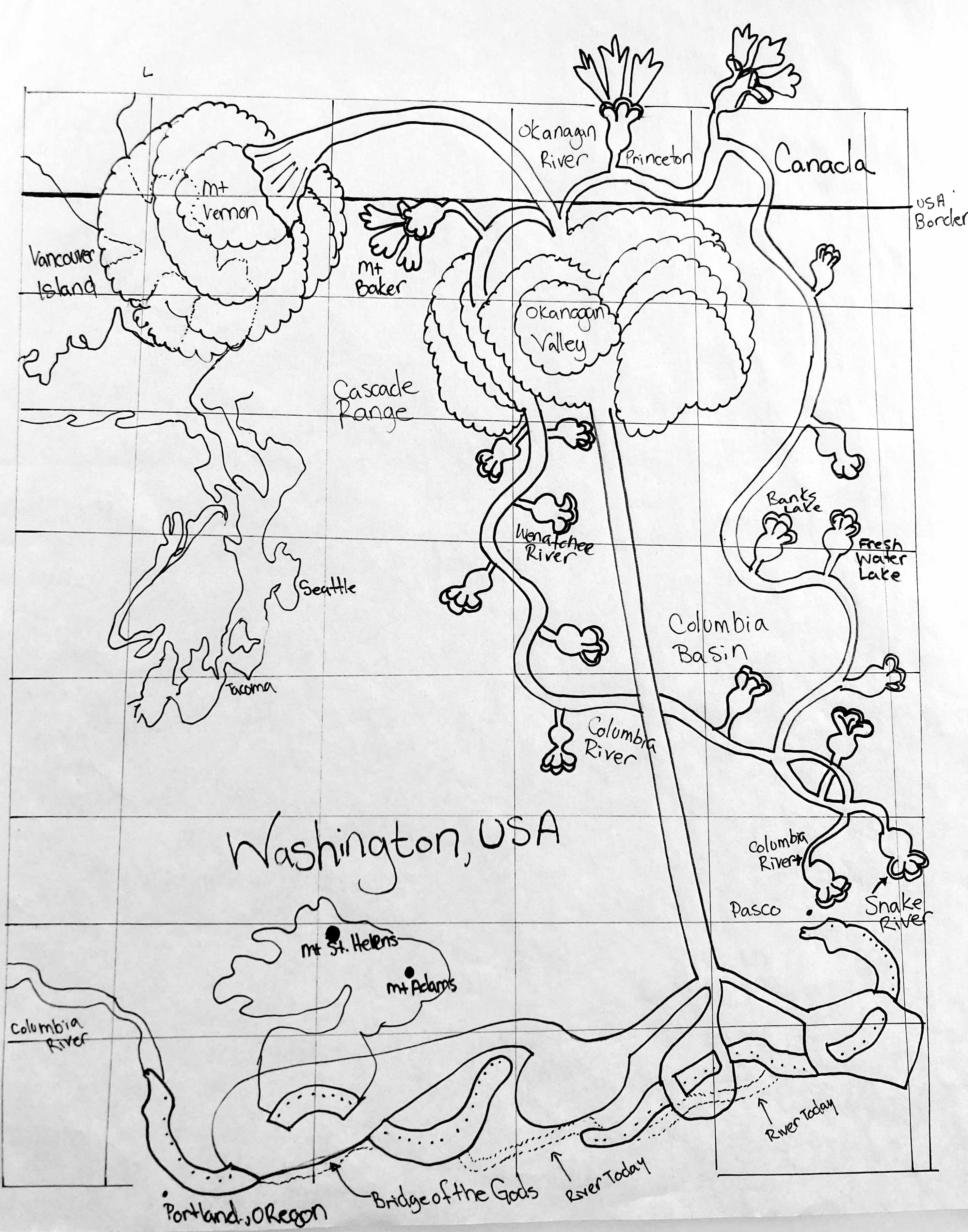 Easter Eggs: Bridge of the Gods legend told by the Klickitats. Legend ref. throughout Folios 47-49.
