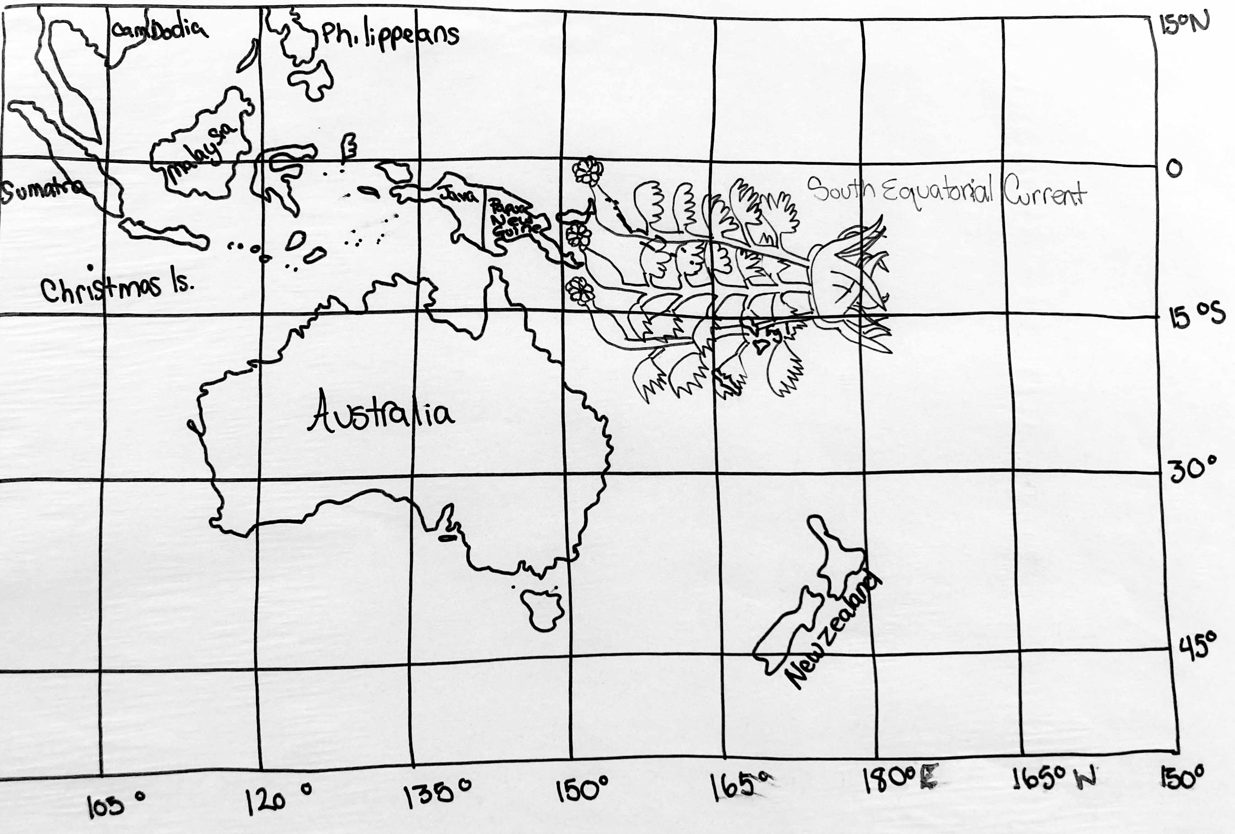 Ethnobotany: word “tyape” meaning in Northern Australian Aboriginal a type of edible larvae meaning hooked stick. A reference to the Gulf of Carpentaria where Java and Australia are closest together.
