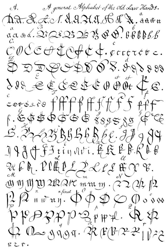 To best understand this concept studying Old English law hand was vital in learning how to visually see through the manipulation. A good resource of this was written in 1716. The Old English Law hand image below is a vital resource in comparing the VM cypher to real letters. Other mathematical symbols in the cypher come from ancient Greek symbols. Observe the upper case letter P and the physics symbols posted above. Can you see how it was manipulated, rotated and straightened out?