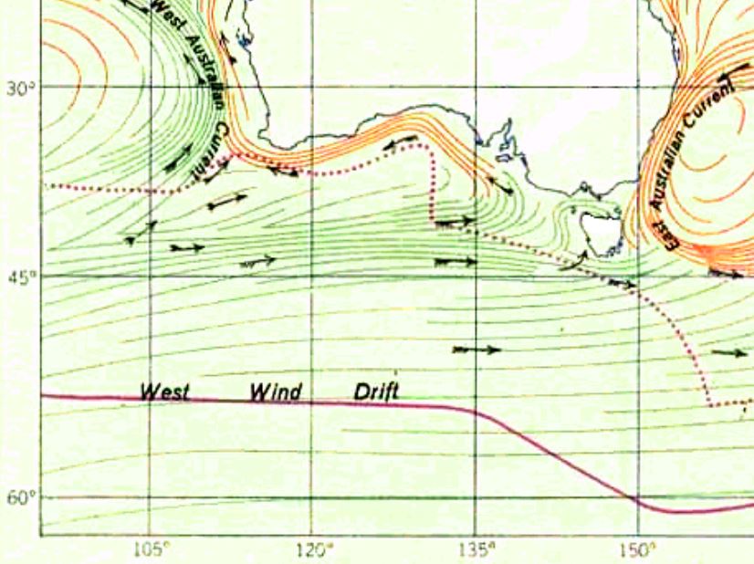 Ocean Currents/Gyre: Antarctica Circumpolar Current, Sub-Antarctic zone, Flinders Current, Tasman Outflow