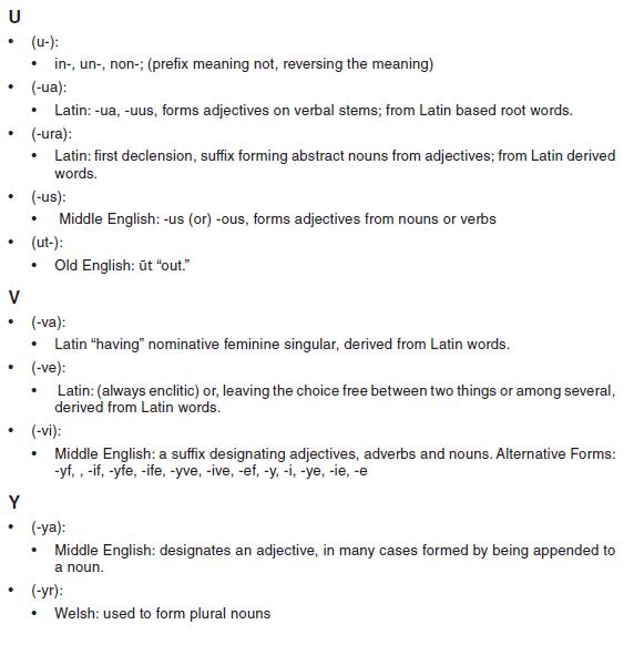 Prefixes, Interfixes, and Suffixes
